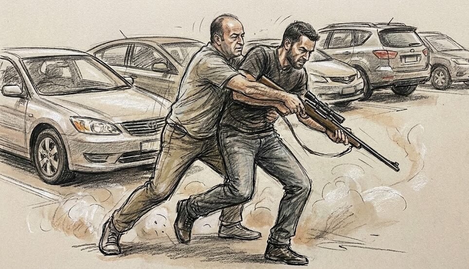 Dengan memanfaatkan kekacauan dan mobil-mobil yang terparkir sebagai pelindung, Ahmed menyelinap di belakang pelaku. Tanpa senjata, hanya bermodalkan nyali, ia menerjang Sajid Akram dari belakang.