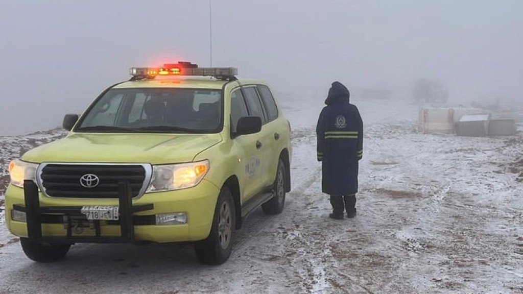 Salju jarang terjadi di Arab Saudi, namun gelombang dingin sebelumnya sempat membawa hujan salju di daerah pegunungan tinggi.