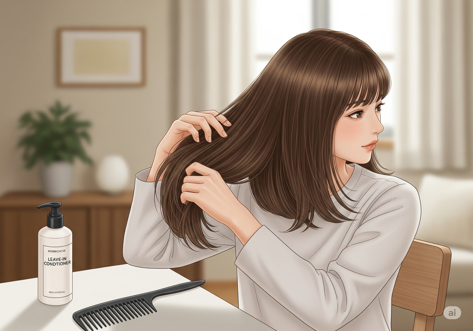 - Sisir rambut saat kering atau setengah kering: Rambut basah lebih rapuh dan rentan terhadap kerusakan. Jika harus menyisir rambut basah, gunakan kondisioner leave-in terlebih dahulu.