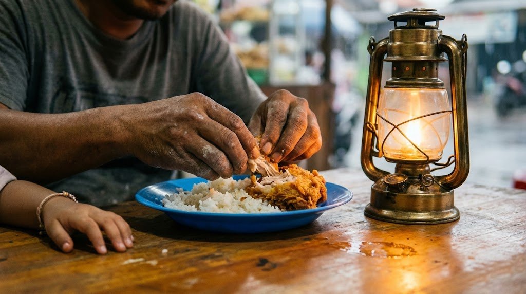 Kemarin kita belajar tentang lapar sebagai bahasa empati. Malam itu saya belajar bahwa lapar juga bisa menjadi jembatan. Meskipun tidak ada satu kata pun yang saya ucapkan kepada bapak itu, ada sesuatu yang sempat bersentuhan di antara kami—di ruang makan yang sederhana itu, di antara dua piring nasi dan satu ayam goreng.