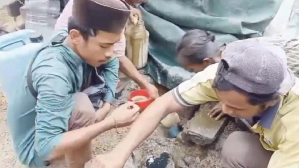 Cairan yang diduga kuat sebagai minyak mentah itu langsung meluap ke permukaan tanah, memicu rasa penasaran warga sekitar. Dalam waktu singkat, lokasi pengeboran dipenuhi oleh masyarakat yang ingin menyaksikan fenomena langka tersebut. Sebagian warga bahkan terlihat membawa jeriken untuk menampung cairan yang keluar dari lubang bor.