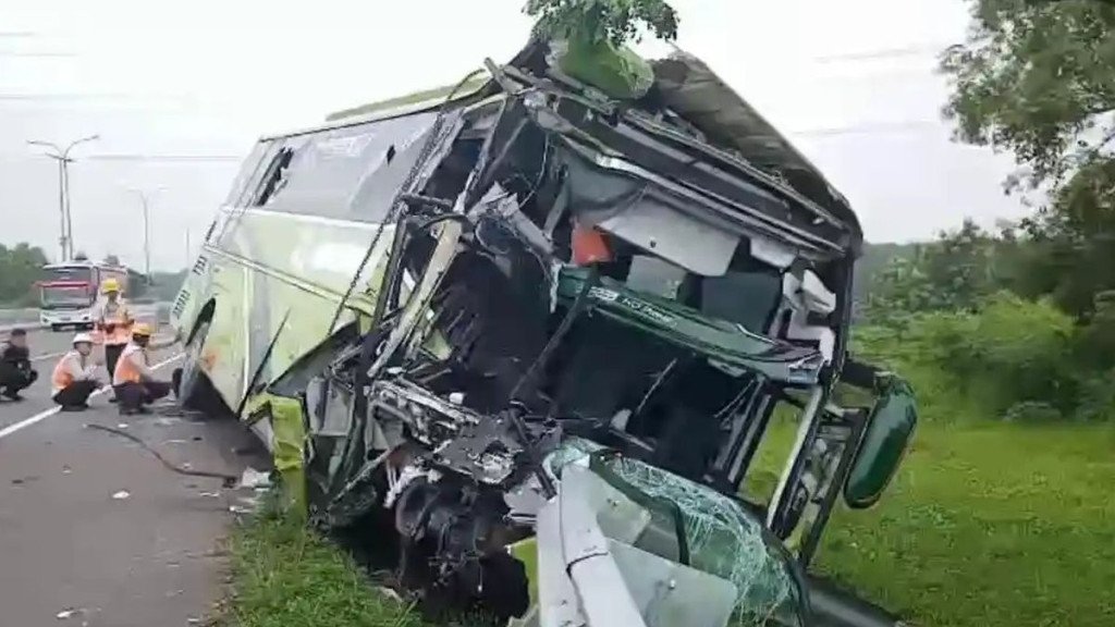 Peristiwa nahas ini terjadi sekitar pukul 04.00 WIB, Senin (16/2/2026). Bus bernomor polisi A 7709 B, yang melaju dari arah Jakarta menuju Cirebon, diduga menabrak bagian belakang truk yang melaju searah di depannya. Bukannya berhenti, truk tersebut justru melarikan diri dari lokasi kejadian, meninggalkan bus yang oleng dan akhirnya menghantam pembatas jalan.