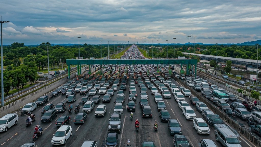 Kedua, pertemuan arus kendaraan yang keluar dari jalan tol dengan kendaraan yang sudah berada di jalur arteri turut memperparah beban lalu lintas. Situasi ini menciptakan titik simpul yang sulit terurai, terutama di gerbang tol yang menjadi ‘bottleneck’ alami.